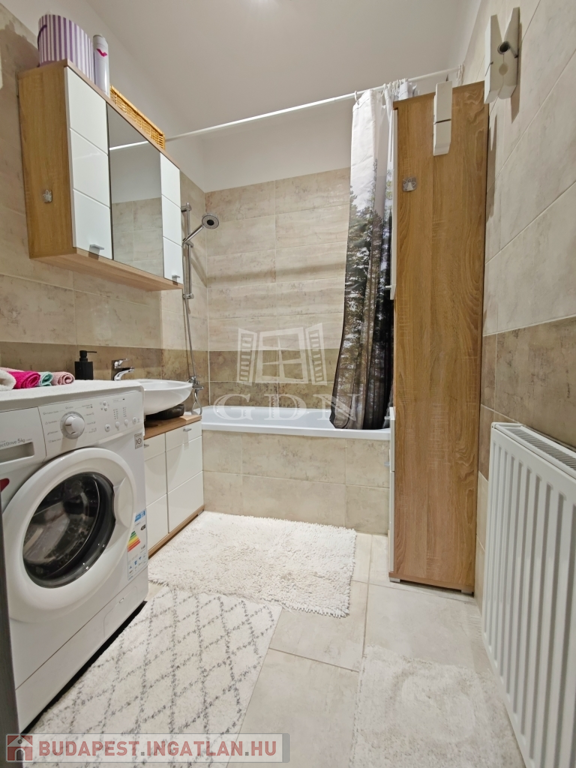 A lakással együtt eladó egy, a mélygarázsban lévő GÉPKOCSI BEÁLLÓ és egy, közvetlenül mellette található 9 m2-es tároló.