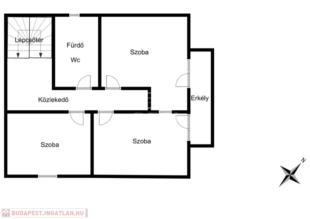 Elrendezés: nappali + 3 hálószoba
