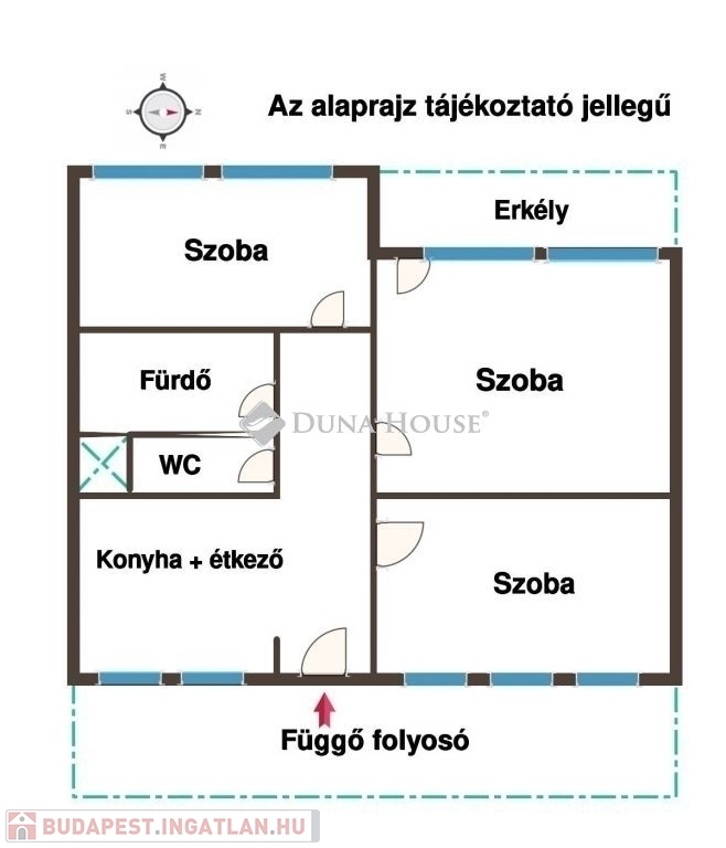 Az ablakok redőnyösek, az ingatlan kelet nyugati fekvésű.