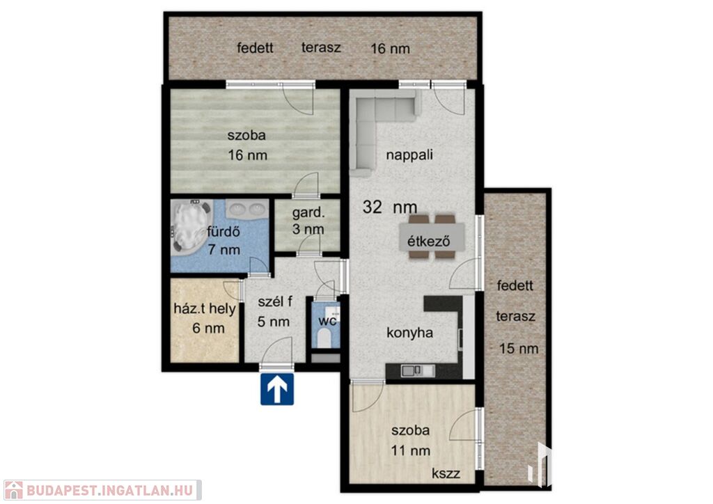 - 81/ 73 nm lakótér + 31 nm fedett terasz.