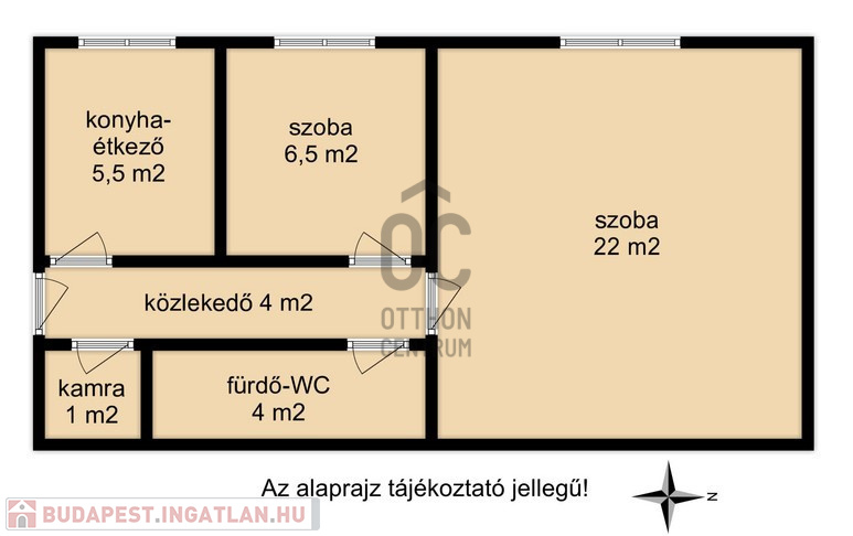 1 +1 félszoba, konyha-étkező, közlekedő, kamra, fürdőszoba+WC helyiségekből áll