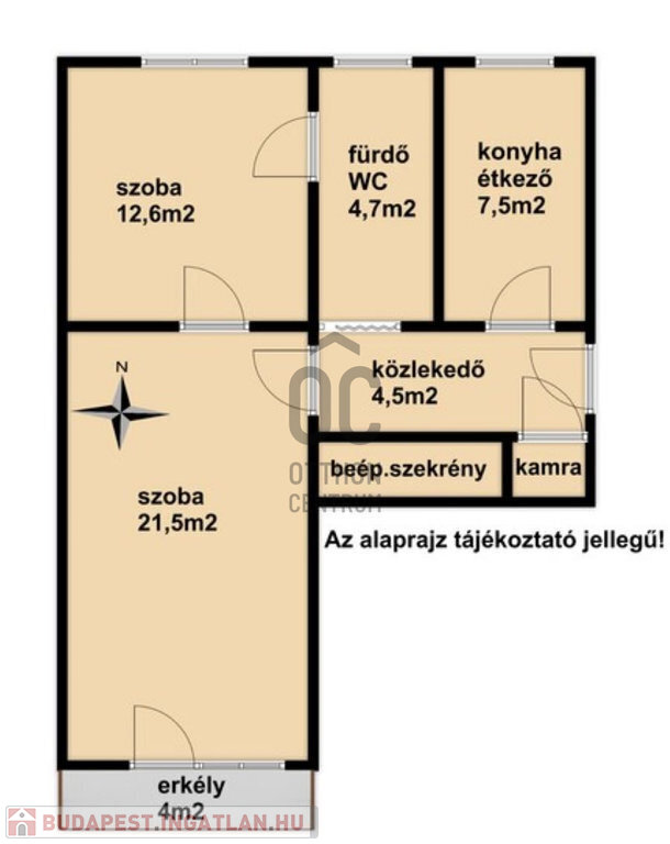 - helyiségei: 2 tágas hálószoba, konyha-étkező, fürdő-WC, közlekedő, kamra és beépített szekrény