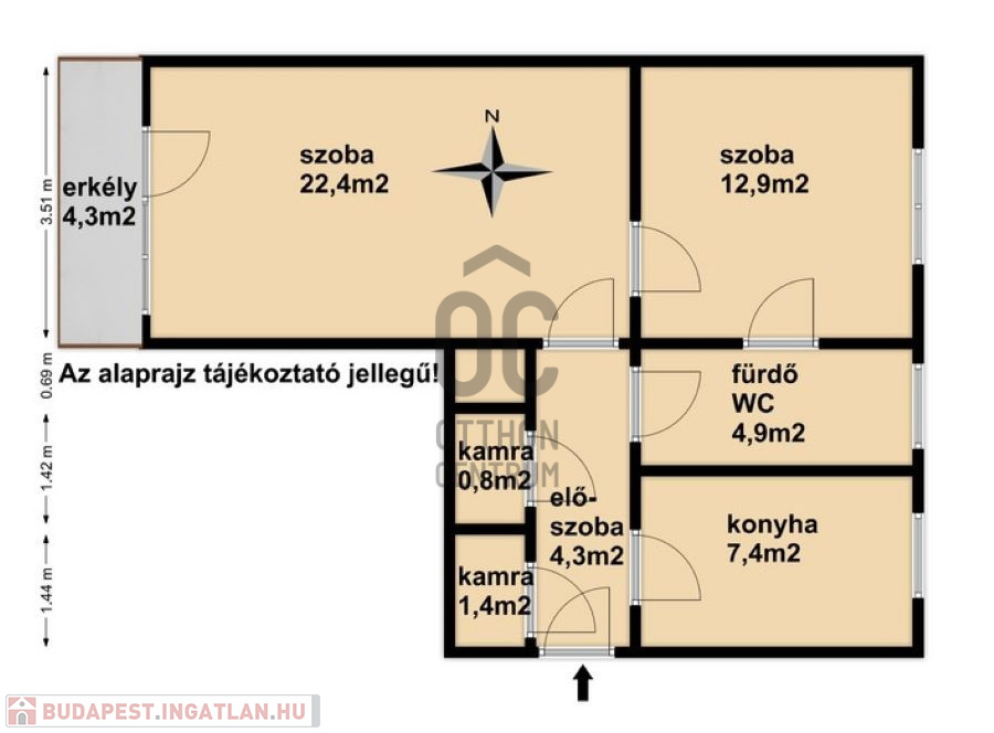 Megvételre kínálom ezt a nettó 56 m2-es, erkélyes, magasföldszinti lakást.