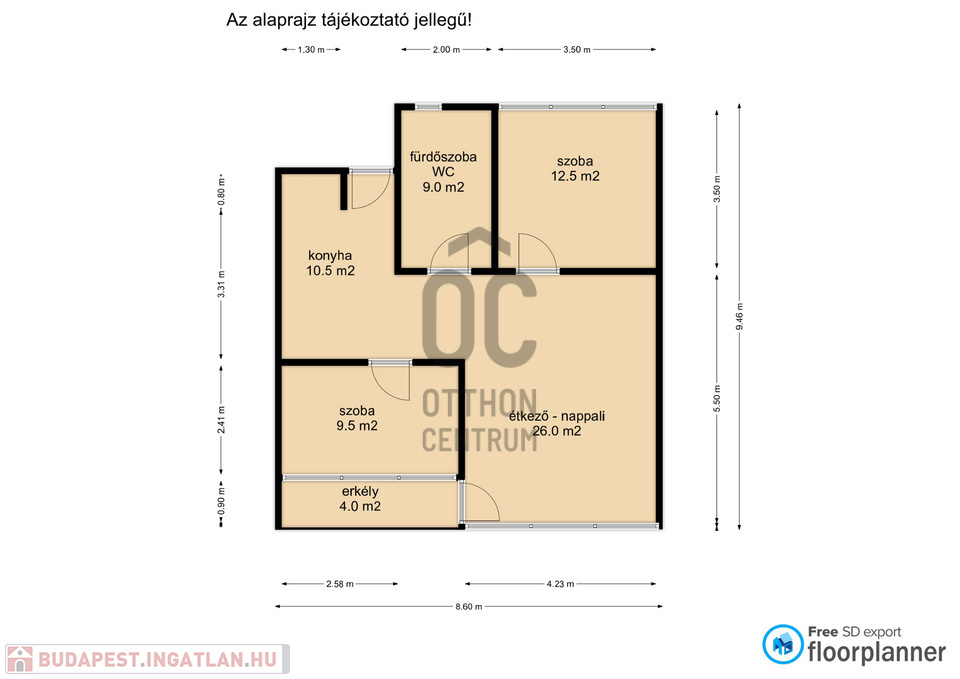 A 26 m2-es nappali, a konyha 2 hálószoba és a fürdőszoba azonnal az Ön otthona lehet.