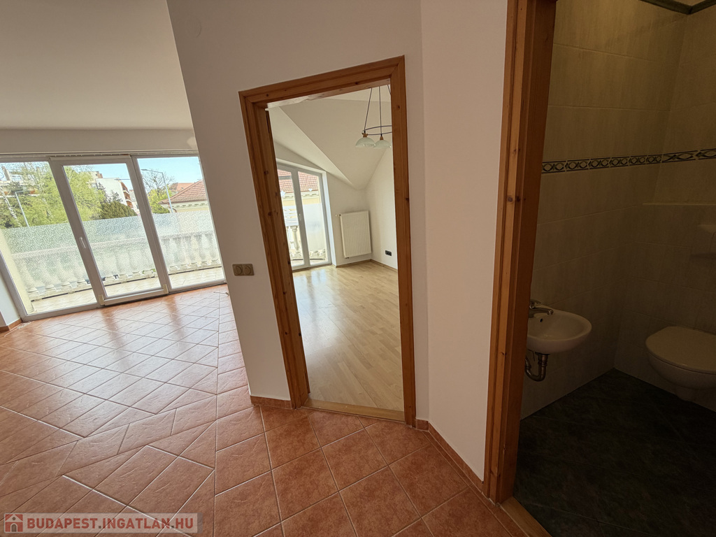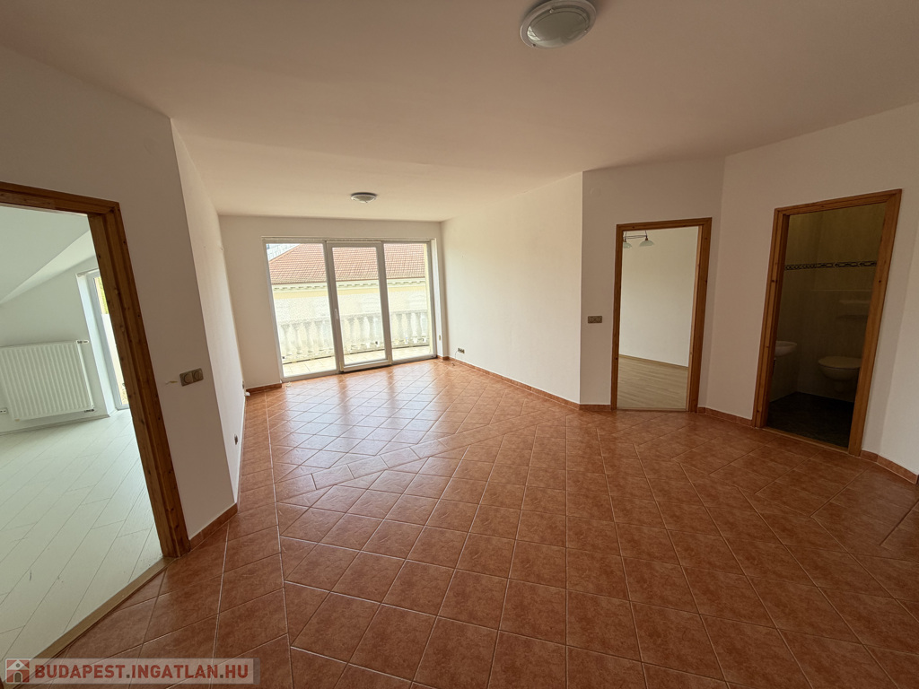 Az ingatlan egyik legnagyobb értéke a tágas, világos élettér és a nappaliból nyíló hangulatos erkély, ahonnan a város egyik legszebb részére nyílik kilátás – itt a reggeli kávé tényleg élmény.