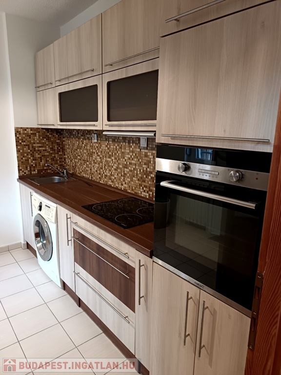 Újszerű, beépített, gépesített konyhabútorral,