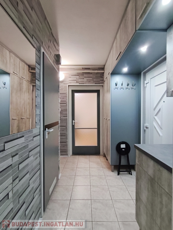 Szigetelt, panel építésű, liftes társasház 10. emeletén található, mért távfűtéses, 2 db hűtő-fűtő klímával, új konyhabútorral, beépített szekrénnyel, redőnnyel, rovarhálóval szerelt műanyag nyílászárókkal, laminált padló, járólap burkolatokkal rendelkezik, közös tároló tartozik hozzá.