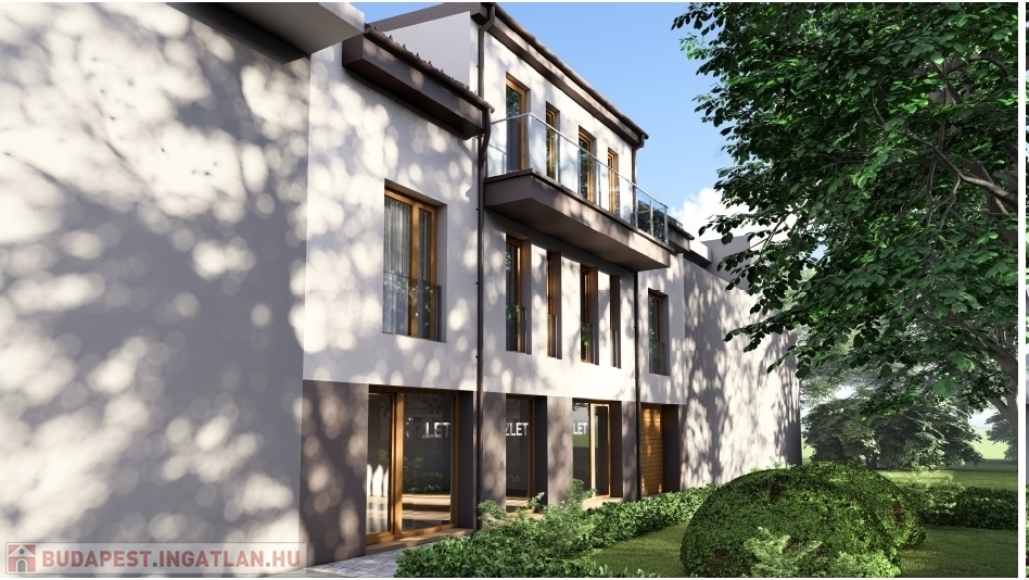 A földszinti lakás: 45 m2 + teraszkapcsolat, 1 szoba + nappalis elosztással. Egyedi gázfűtés, padló fűtés. Ára: 54.900.000 Ft