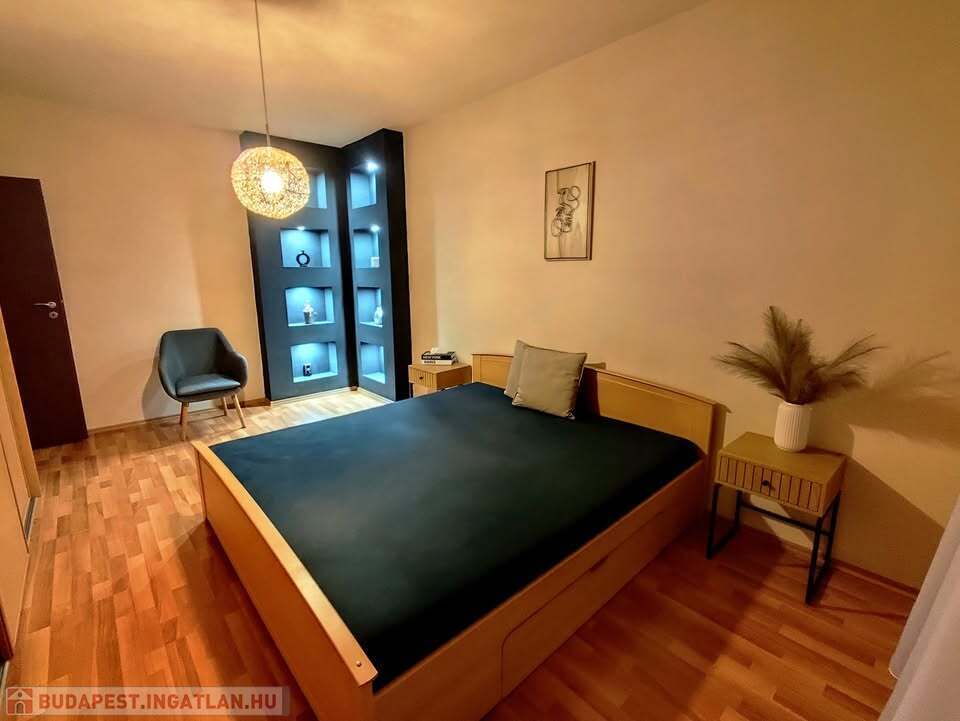 Az ingatlan két különnyíló szobával rendelkezik, műanyag nyílászárói redőnnyel felszereltek, a komfortérzetről klímaberendezés gondoskodik. A lakás értékét növeli az erkély, valamint a beépített gardrób.Felújítás során új beltéri ajtók kerültek beépítésre, továbbá egy modern, beépített, gépesített konyhabútor is a lakás része.