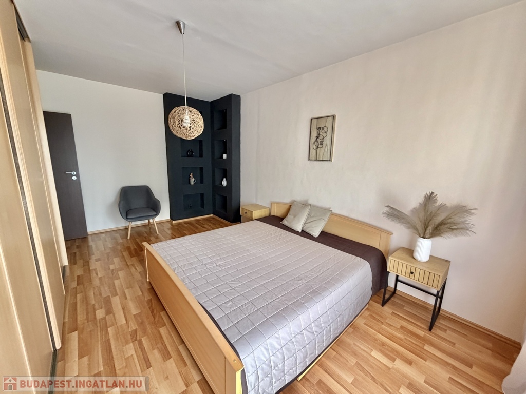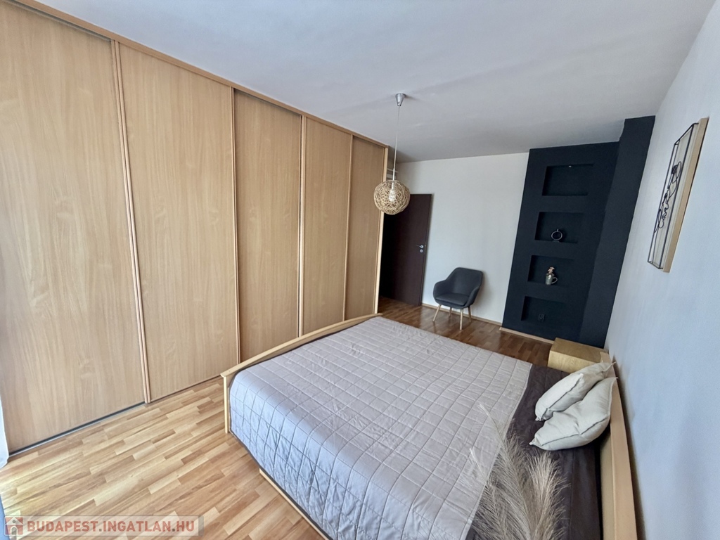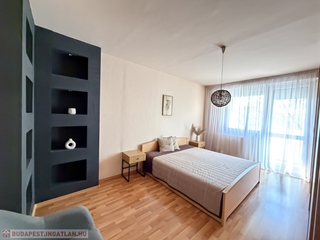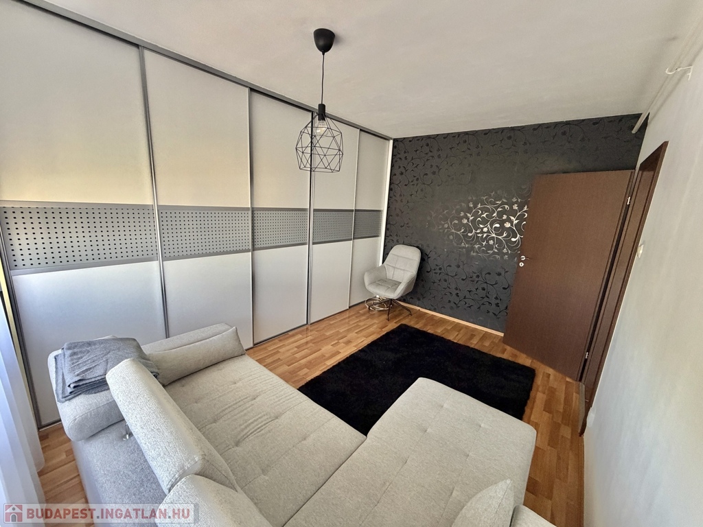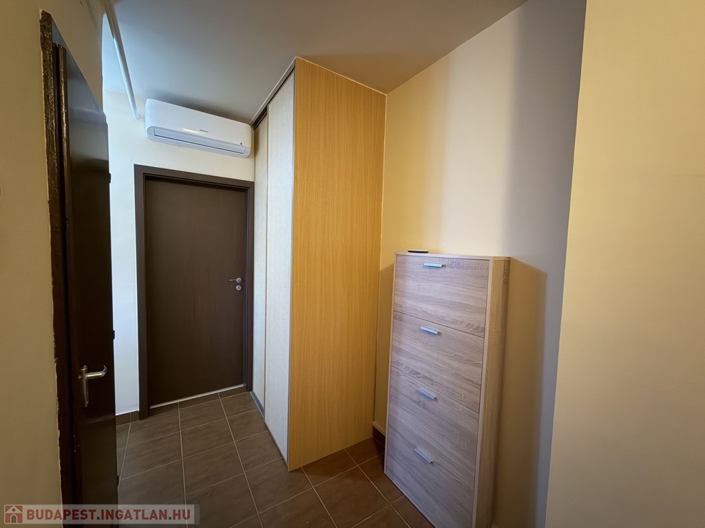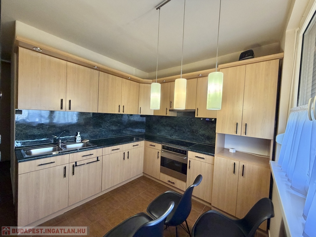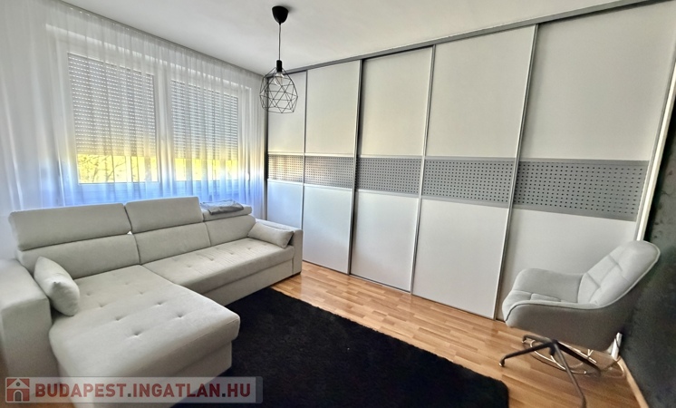 Panel építésű társasház 4. emeletén található, mért távfűtéses, klimatizált, redőnnyel szerelt műanyag nyílászárós, laminált padló, járólap burkolatú, közös tároló tartozik hozzá.