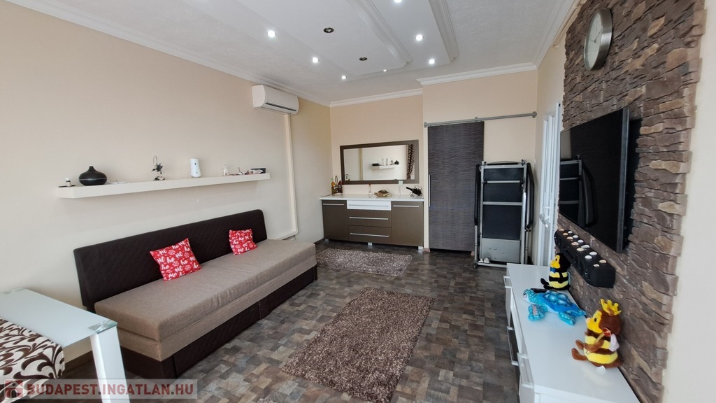 A hűtő-fűtő klíma nyáron és télen is praktikus megoldás, a gázkonvektor pedig gazdaságos fűtést tesz lehetővé. Az ingatlan tehermentes.