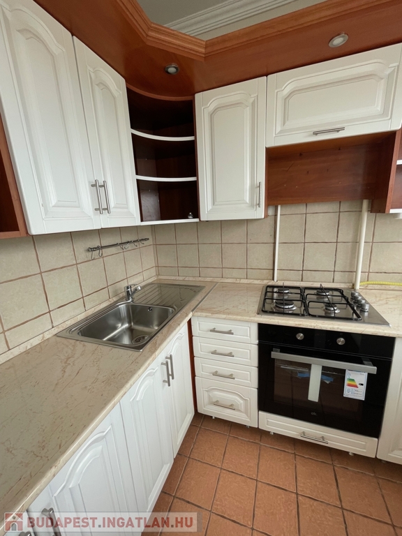 A gépesített konyhabútor a vételár részét képezi, melyhez új gázfőzőlap és villanysűtő is tartozik.