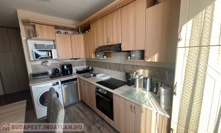 A lakás egy liftes, kamerával felszerelt, rendezett társasház 7. emeletén található, keleti fekvésének köszönhetően világos és napfényes.