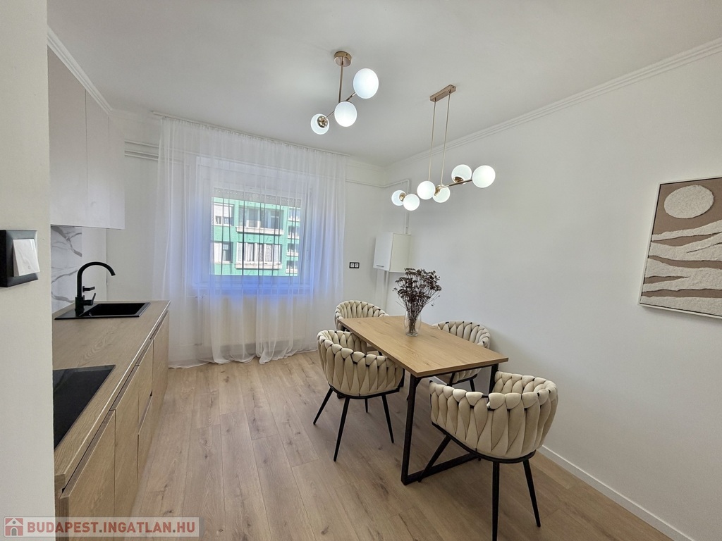 A lakás teljes körű felújításon esett át, mely során elektromos áram és vízvezeték csere is történt, új fürdőszoba, új konyha, új beltéri és bejárati ajtó, új hűtő-fűtő klíma, új bútorok kerültek beépítésre, egyedi gázfűtéses, redőnnyel, rovarhálóval szerelt műanyag nyílászárós, új laminált padló, járólap burkolatú.