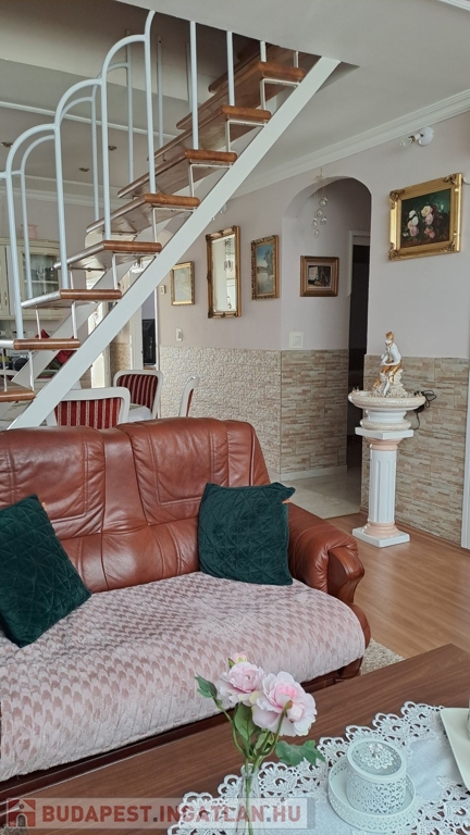 A lakás alsó szintjén: 2 szoba, nappali, konyha, fürdőszoba, külön helyiségben wc