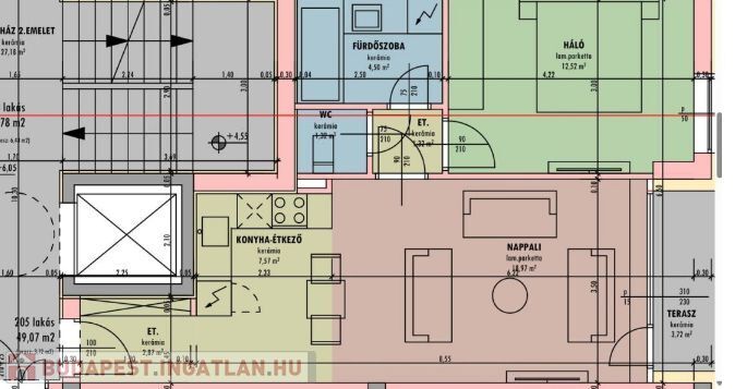 Az ingatlan praktikus elosztású, világos terekkel rendelkezik. A nappaliból közvetlen kijárat nyílik a 3,7 m²-es teraszra, amely kellemes kikapcsolódást biztosít.
