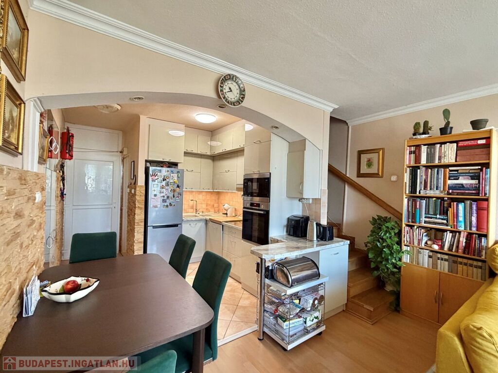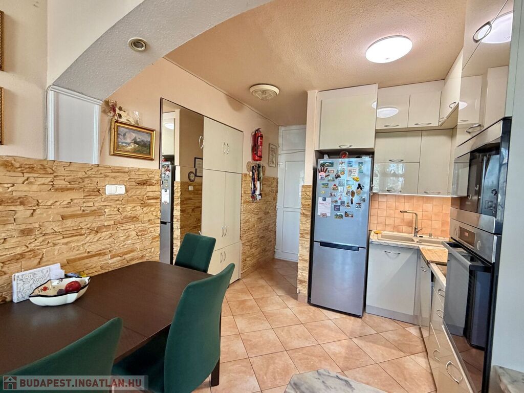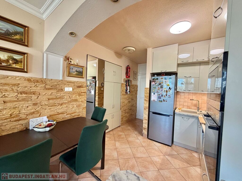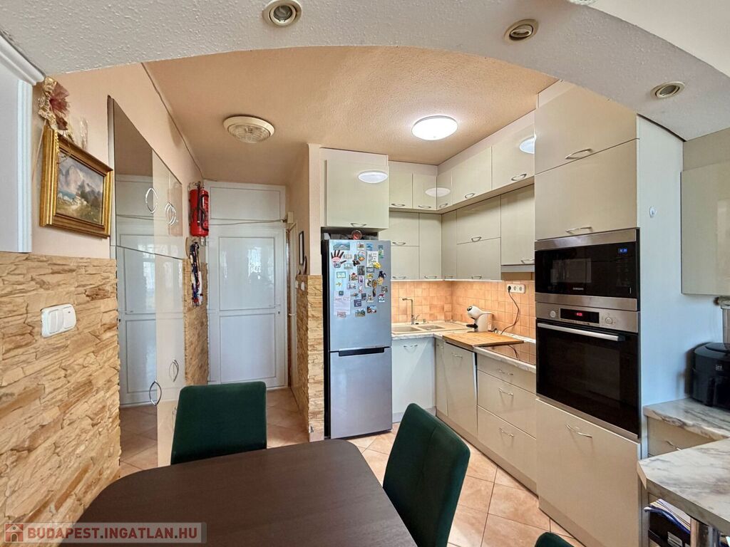 A lakásban 2 éve a konyhát felújították, új egyedi gépesített konyhabútor került beépítésre.