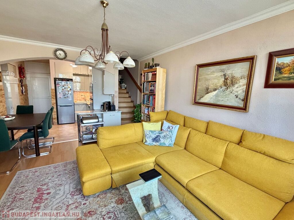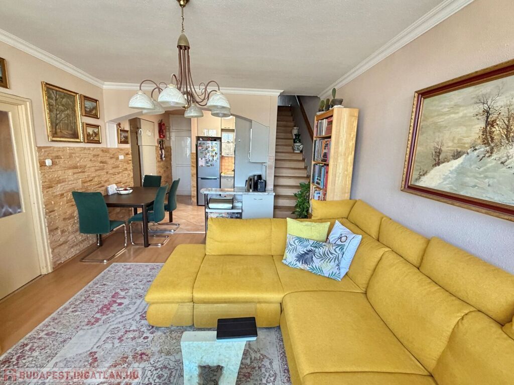 Alsó szinten: nappali - konyha - étkező erkéllyel, kamra, 1 szoba gardróbbal, wc