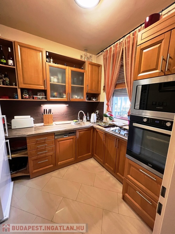 Tégla építésű, liftes társasház 1. emeletén található, házközponti fűtéses, klimatizált, redőnnyel szerelt műanyag nyílászárós, laminált padló, járólap burkolatú.