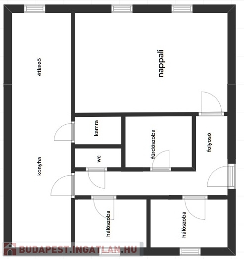 A lakás két hálószobával, nappalival, valamint konyha–étkezővel rendelkezik, így családok számára is ideális választás lehet.