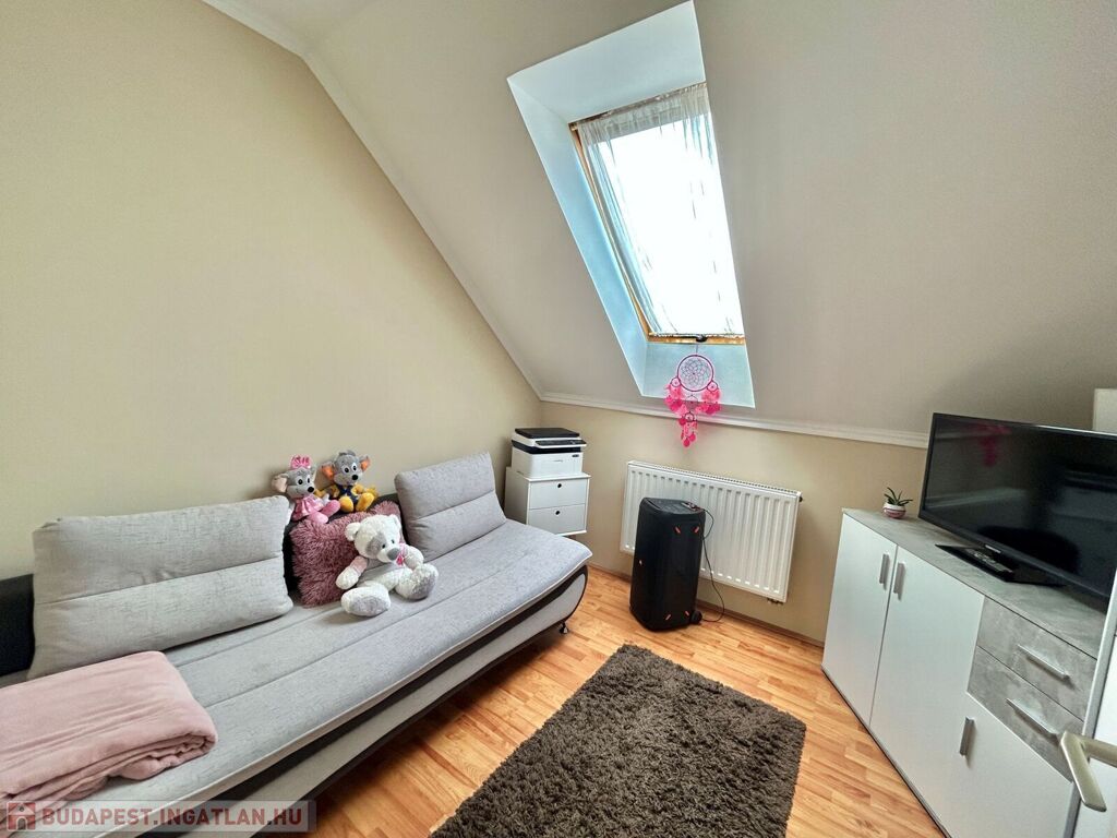 Az ingatlan kiváló adottságokkal rendelkezik akár bővíthető is: a tetőtér alkalmas két különálló szoba és egy fürdőszoba befogadására, így a lakótér rugalmasan az új tulajdonos igényeire szabható.