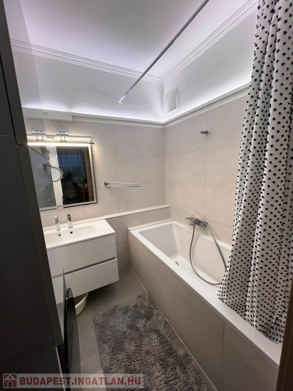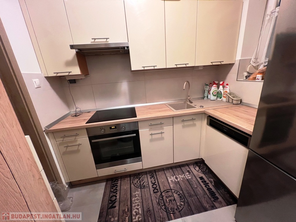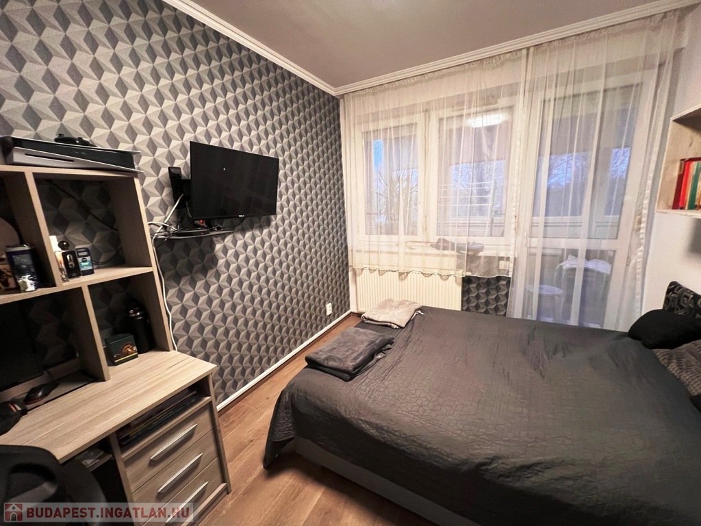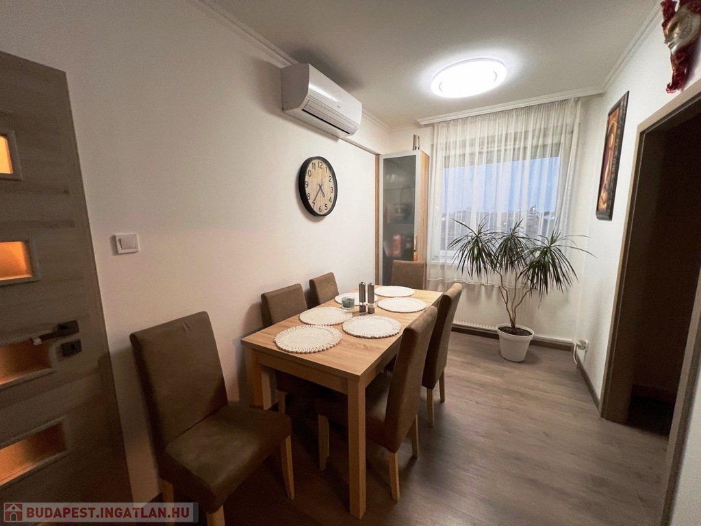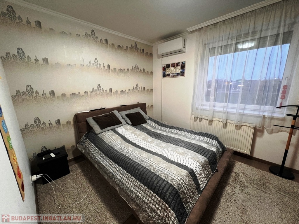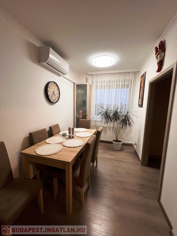 A lakás elrendezése praktikus és élhető: tágas nappali étkezőrésszel, külön nyíló két hálószoba, gardrób, konyha, fürdőszoba, külön helyiségben található WC, valamint egy zárt erkély biztosítja a kényelmet. Az otthon műanyag nyílászárókkal, redőnnyel, klímával és riasztóval felszerelt, a burkolatok igényesek, a szobákban laminált padló, a többi helyiségben járólap található. A házközponti fűtés egyedi mérővel szabályozható, így a fenntartási költségek tervezhetőek.