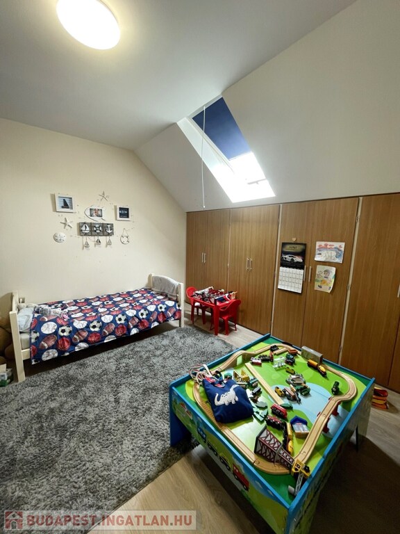 Alsó szint: nappali, 2 hálószoba, külön konyha, fürdő, WC, erkélyFelső szint: 3 hálószoba, fürdő, WC, erkély