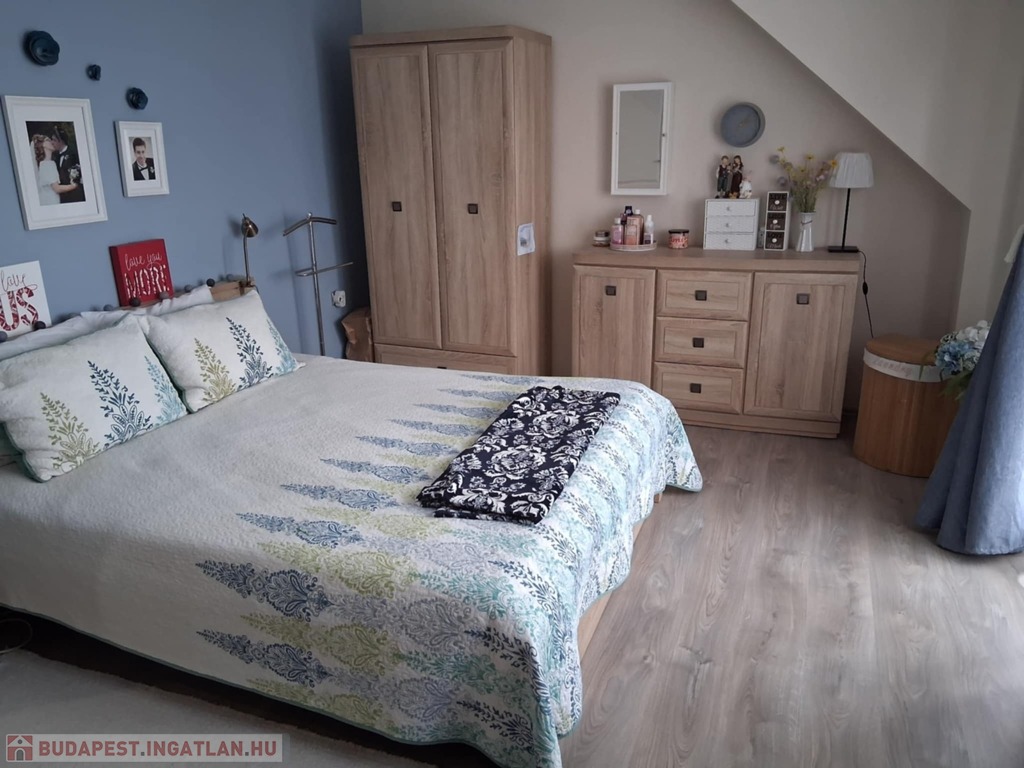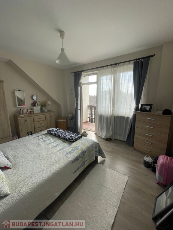 Felső szint: 3 hálószoba, fürdőszoba, WC, erkély