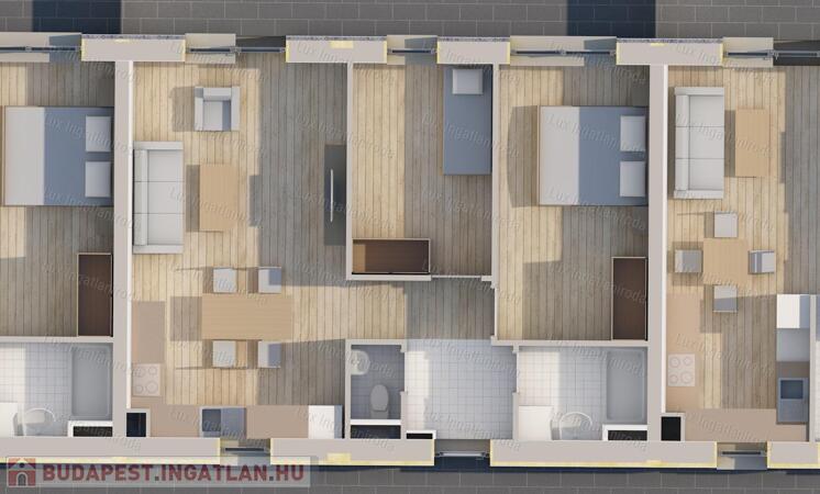 számára. Az épületben 81 darab 27 m2 és 86 m2 közötti alapterületű,
