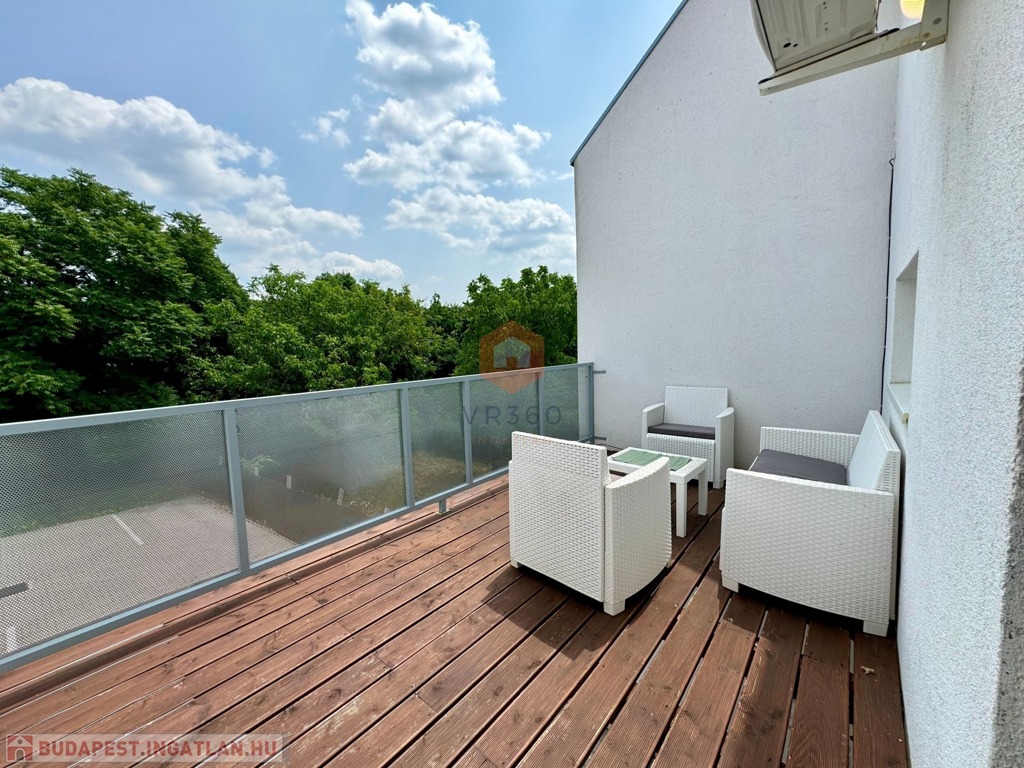 A lakás nyugati fekvésű, világos, teljesen bútorozott és gépesített, valamint klímával felszerelt. A tágas nappalihoz egy 13 m²-es, kényelmes terasz is tartozik, amely ideális kikapcsolódásra vagy tanulásra. A fürdőszoba és a WC külön helyiségben található.