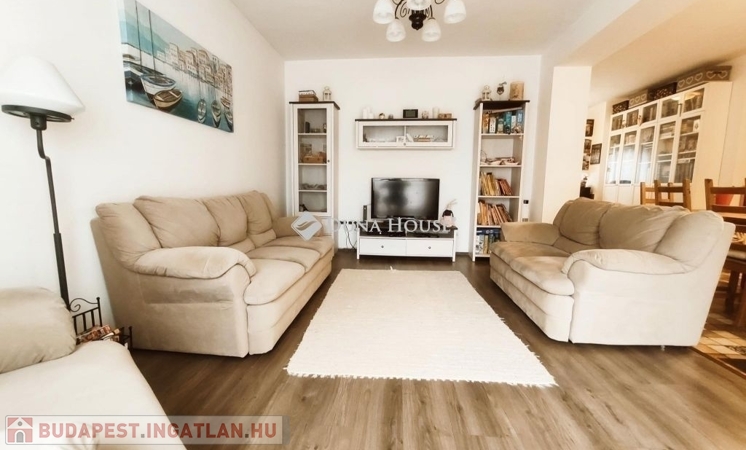Eladásra kínálunk egy egyszintes, 130m2-es , tégla szerkezetű, kertkapcsolatos lakást, amely nem csak egy lakóhely, hanem egy otthon, ahol az élet minden szépsége kiteljesedhet. A ház 1 nappalival és további 4 szobával rendelkezik, amelyek tágasak és világosak, köszönhetően a jól megtervezett elrendezésnek.Az ingatlan a kertkapcsolatnak köszönhetően különleges lehetőséget kínál a szabadtéri tevékenységekhez. A kert gondosan ápolt, tökéletes hely a kikapcsolódáshoz, a gyerekek játékára vagy akár egy családi barbecue est szervezésére.Belépve a tágas előszobába, azonnal érezhető a nyugodt, családias hangulat, amit a természetes fény és a modern, mégis időtálló belső kialakítás is erősít. A nappali a központi helyiség, ahol a család és a barátok összegyűlnek, hogy kellemes időt töltsenek együtt. A konyha és az étkező egy légtérben helyezkedik el, ideális helyszín a közös főzésekhez és étkezésekhez.