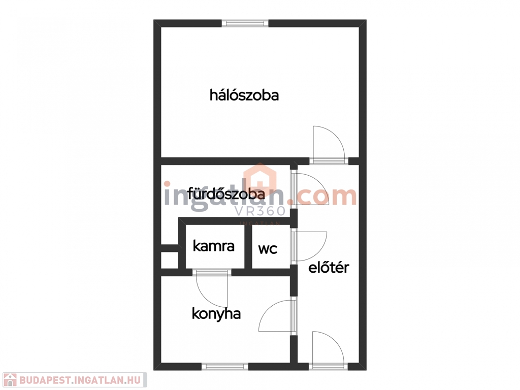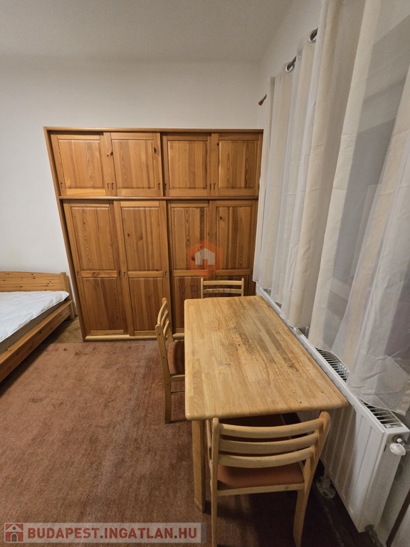 A szoba parkettás, a fürdőszoba és a WC külön helyiségben található.
