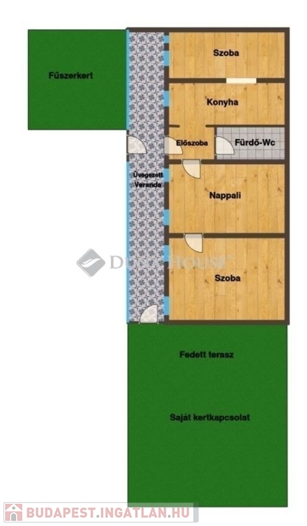 Pécs történelmi Belvárosában eladó egy 59 nm lakótérrel rendelkező, nappali+ 2 szoba elosztású, felújított állapotú, klímás, gáz kondenzációs kazánnal fűtött, polgári hangulatú lakás, ÜVEGEZETT VERANDÁVAL, SAJÁT 50 NM-es KERTKAPCSOLATTAL, fedett terasszal, fűszerkerttel. Az ingatlan udvari elhelyezkedéséből adódóan inkább kis ház jellegű, mint társasházi lakás, így közvetlen szomszédoktól is mentes! A lakás felújítása során igyekeztek megőrízni eredeti polgári jellegét ( eredeti fa külső-belső nyílászárók megtartásával és hajópadló helyreállításával). Keressen bizalommal, amennyiben kérdése lenne vagy megtekintené az ingatlant!