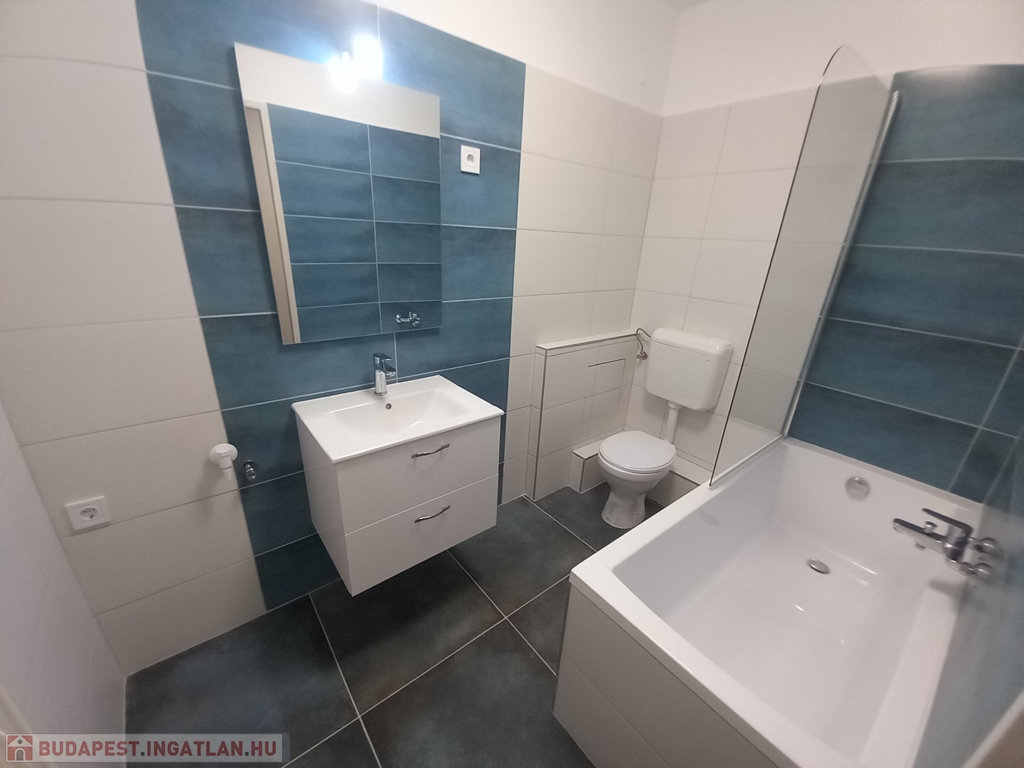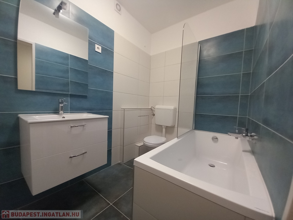 A modern fürdőszoba káddal felszerelt, amelyhez a praktikus használat érdekében zuhanyparaván is tartozik. A lakásban új, gépesített konyhabútor került beépítésre, amely tovább növeli az ingatlan komfortját és értékét.