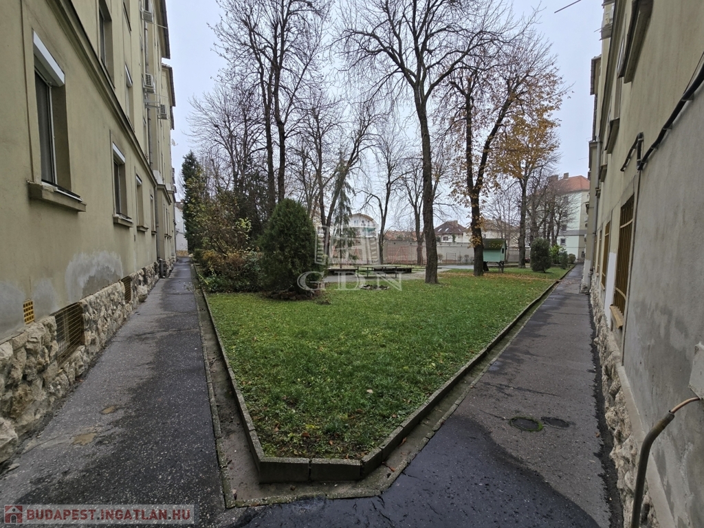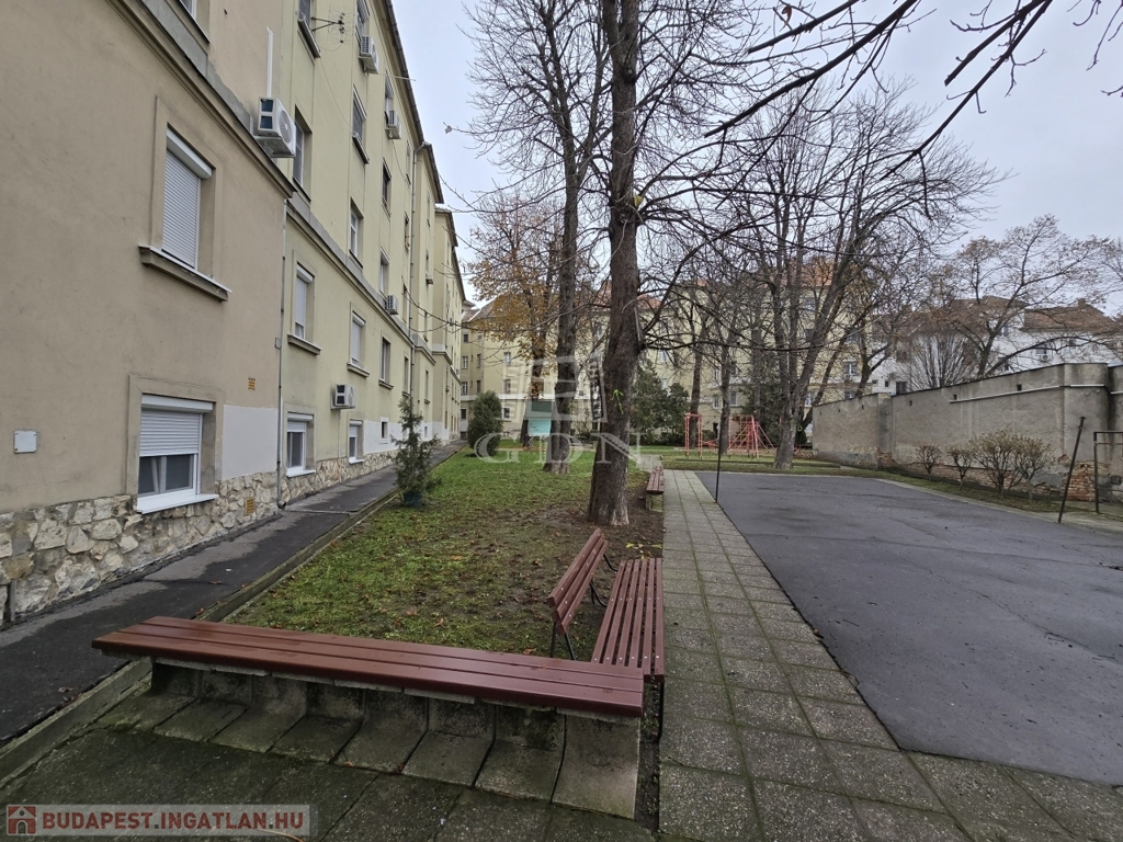 A lakás egy az 1950-es évek elején épült, rendezett, 12 lakásos társasházban található, csendes lakóközösséggel és tiszta, karbantartott lépcsőházzal. A társasház külön előnye, hogy két bejárattal rendelkezik: az egyik utcai, míg a másik egy parkosított belső udvarra nyílik, ahonnan közvetlenül elérhetők a garázsok is.
