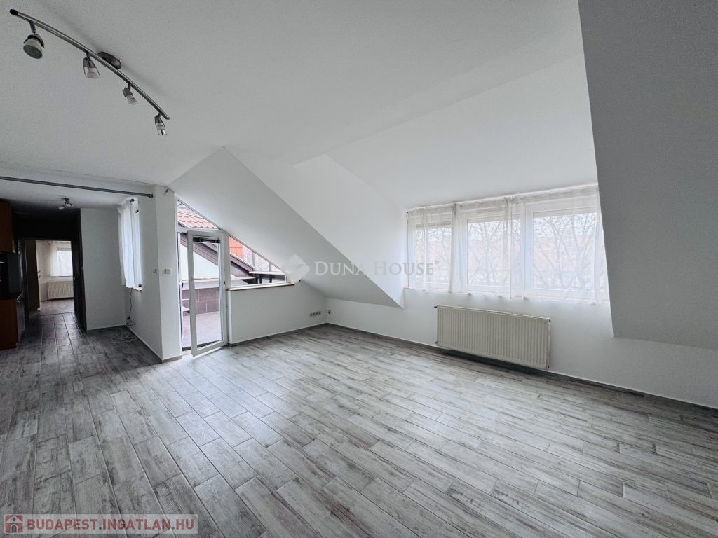 Eladó tetőtéri lakás Pécs közkedvelt Uránváros városrészében!Pécs egyik legkedveltebb, zöldövezeti részén, Uránvárosban eladóvá vált egy 1990-ben épült, kiváló állapotú, egyedi gázfűtéses tetőtéri lakás. Az ingatlan elrendezése és tágas tereinek köszönhetően ideális választás akár családok számára is.A lakás nettó alapterülete jól átgondolt elrendezésű:két különnyíló hálószoba,egy tágas, világos nappali,külön konyha és étkező,fürdőszoba és külön WC,kamra,dolgozósarok a gardrób részeként.A lakáshoz tartozik egy kb. 15 m²-es nagyméretű terasz, amely kiváló helyszínt biztosít pihenésre vagy baráti összejövetelekre.A lakás fenntartási költsége rendkívül kedvező, a fűtést és meleg vizet egyedi gázkazán biztosítja.A minőségi konyhabútor és beépített konyhai gépek a vételár részét képezik, ahogy a jelenlegi bútorzat is megegyezés tárgyát képezi.Az ingatlanhoz saját tároló is tartozik, a ház pedig rendezett, zöldövezeti környezetben található, jó szomszédsággal és kiváló infrastruktúrával: boltok, iskola, óvoda, buszmegálló néhány perces sétával elérhető.