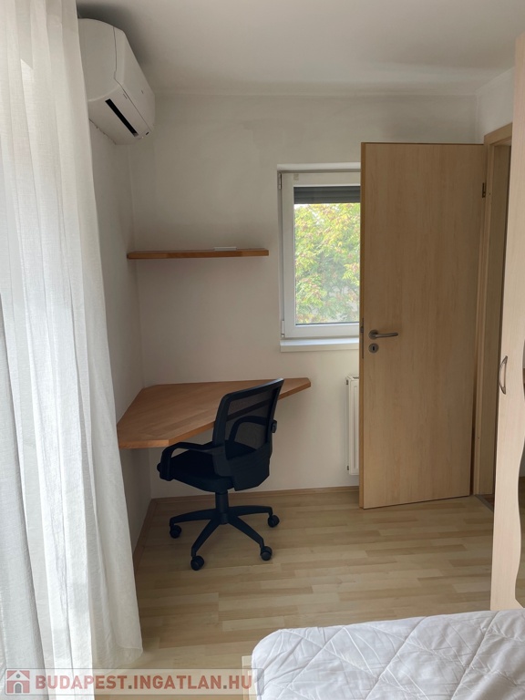 Erkélyes szoba (beépített szekrény és könyvespolc, franciaágy felnyitható, íróasztal, éjjeliszekrény)
