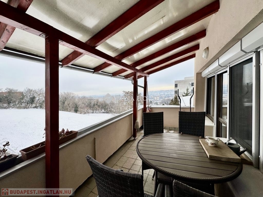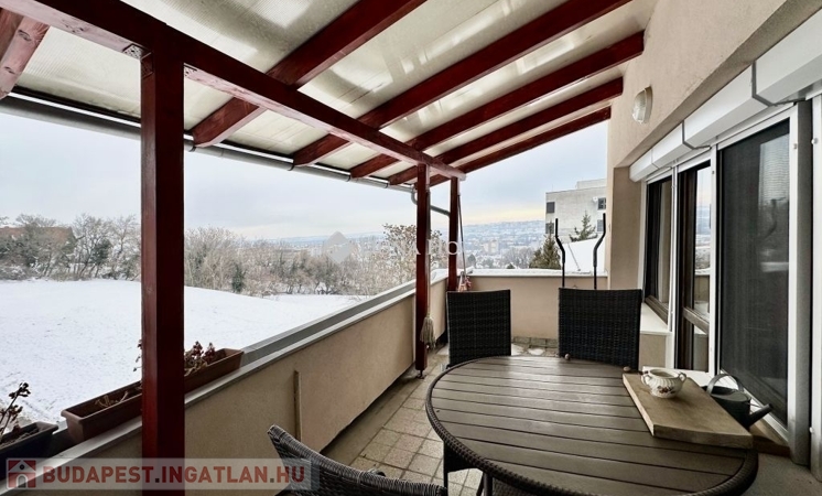 A felső szint három kényelmes hálószobát és egy kádas fürdőszobát kínál, melyek közül az egyik hálószobához saját terasz is tartozik.A lakás korszerű műszaki felszereltséggel rendelkezik: a kellemes hőérzetről padlófűtés gondoskodik infrapaneles rásegítéssel a klímaberendezés és a beépített szauna pedig tovább növelik a komfortot.