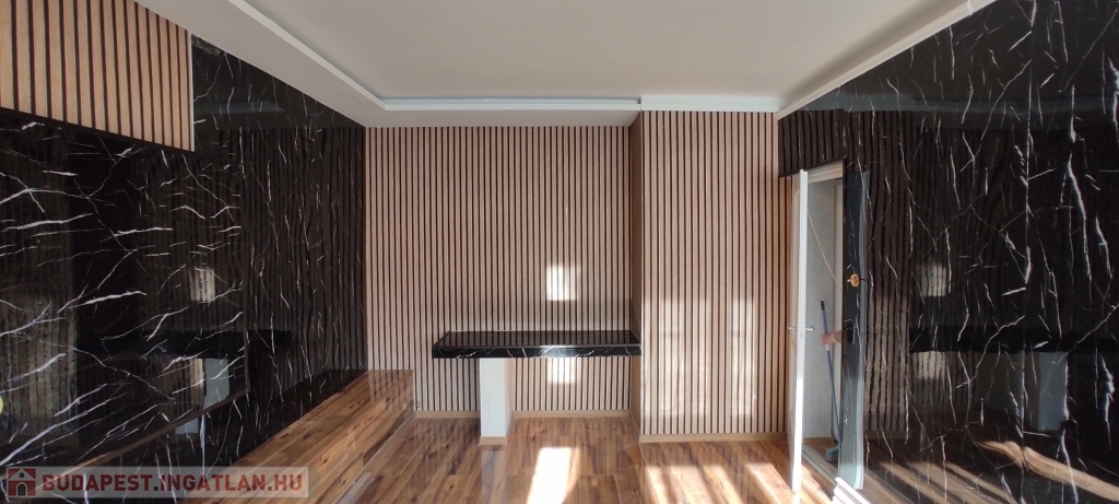 - minőségi és különleges anyaghasználat (műanyag falpanel, greslap, lakkozott hatású szalagparketta, új lámpák)- képek alapján