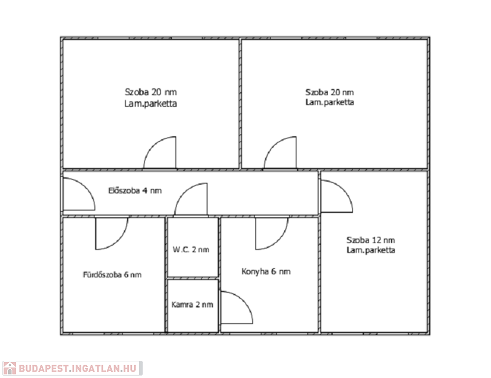 Az ingatlanban 2 szoba, 1 félszoba, konyha, kamra, előszoba, fürdőszoba, külön nyíló W.C. található.