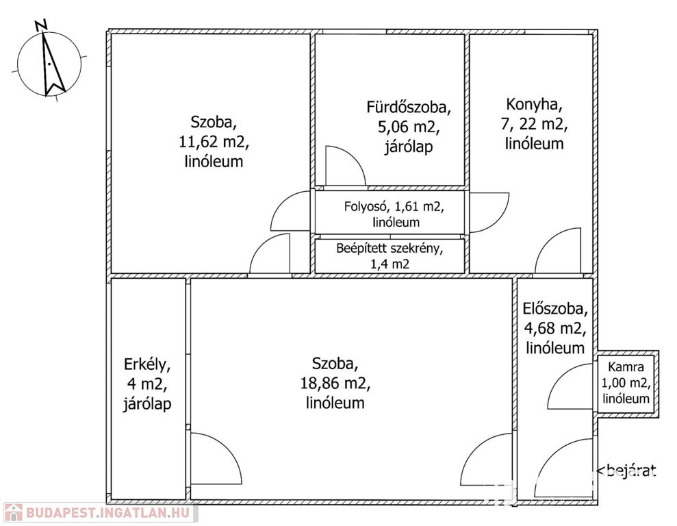 Az ingatlan napfényes, kétszobás, erkélyes, nyugati fekvésű.