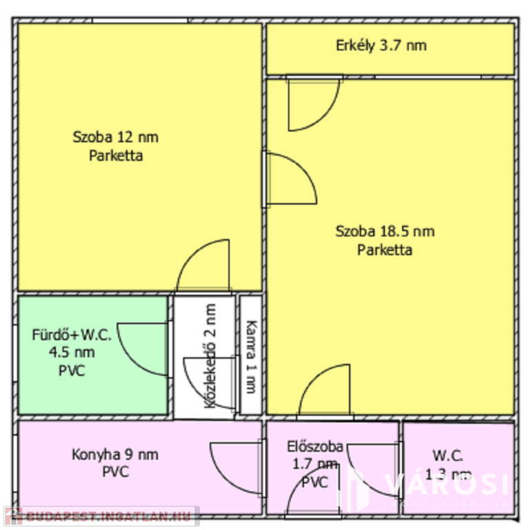 Helyiségei: 2 szoba, konyha, kamra, előszoba, közlekedő, fürdőszoba, külön nyíló W.C., erkély.