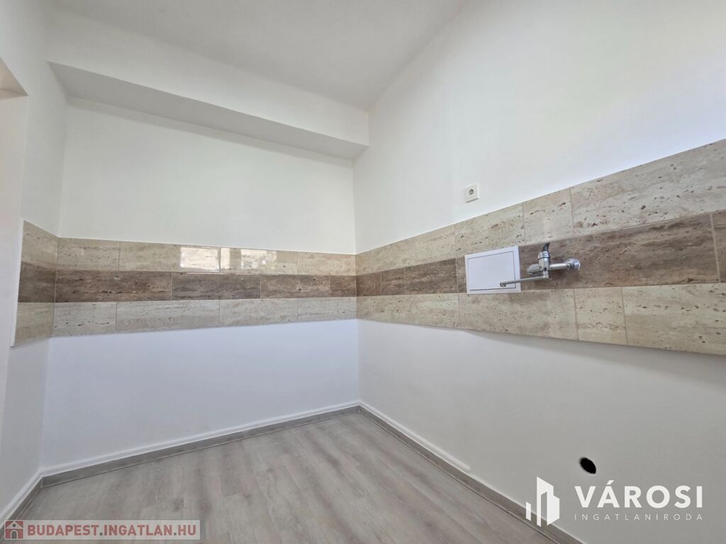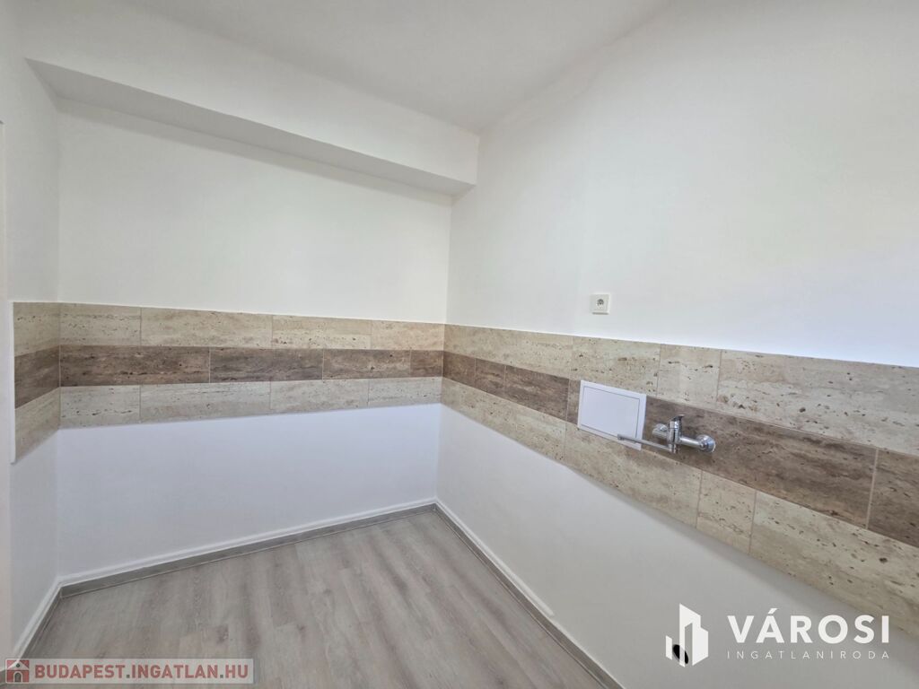 A mosókonyhában a mosógépnek a víz és szennyvízcsatlakozás kiépítésre került.