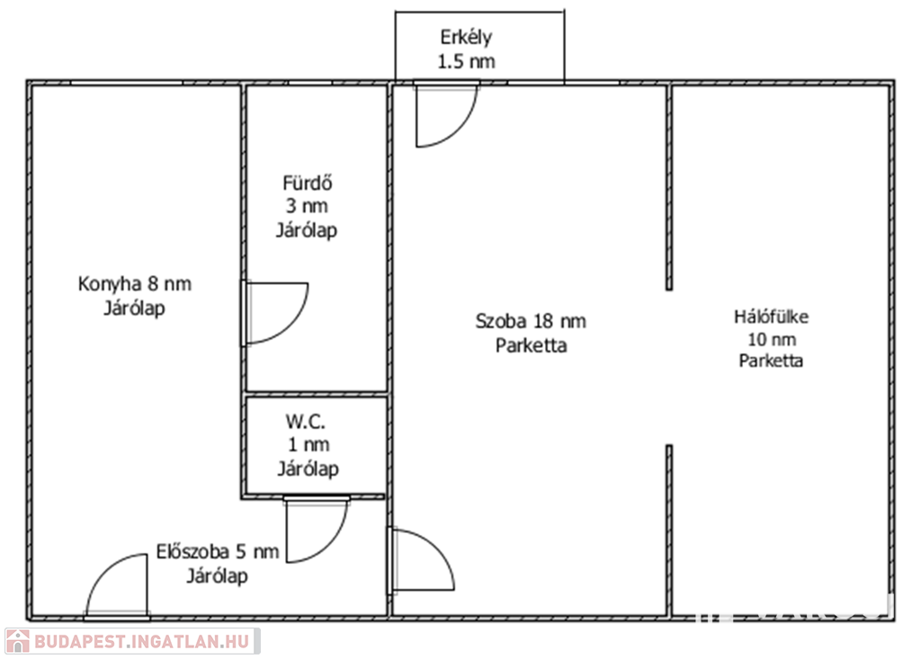 Az ingatlanban 1 szoba, 1 hálófülke (félszoba), konyha, előszoba, fürdőszoba, külön nyíló W.C., erkély található.