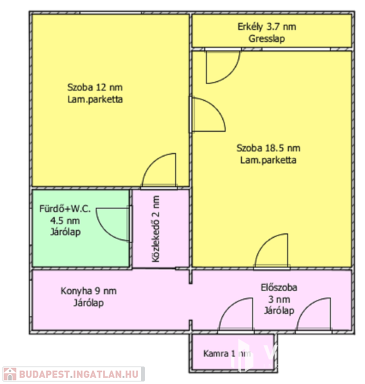 Helyiségei: 2 szoba, konyha, kamra, fürdőszoba, előszoba, erkély.