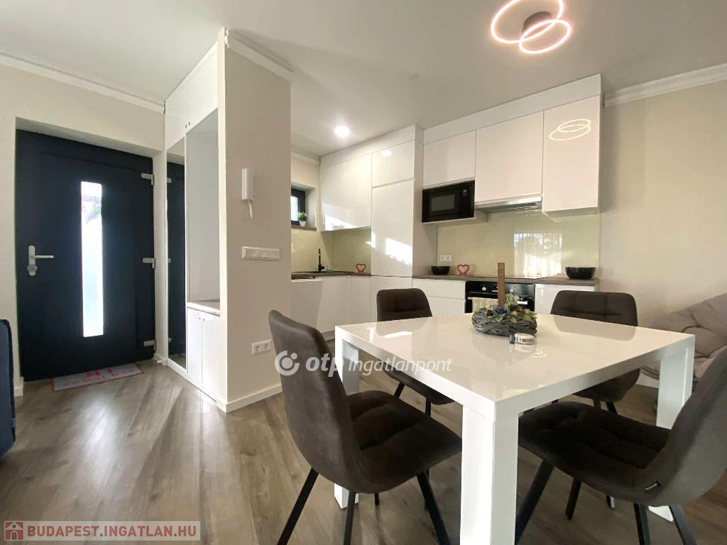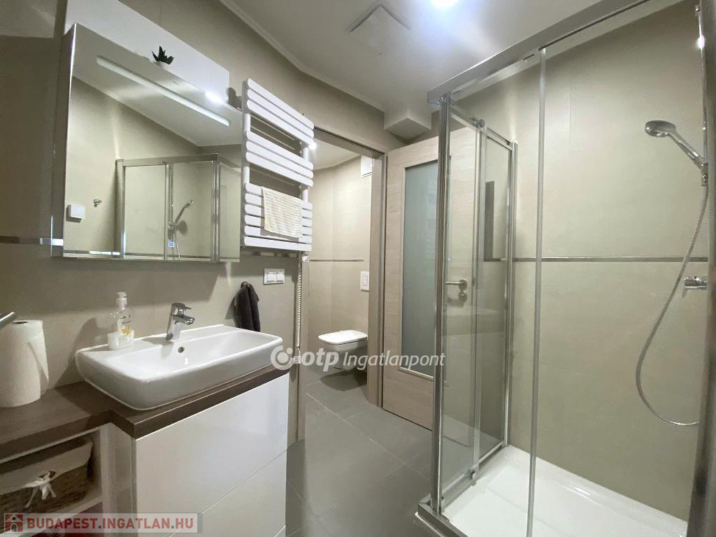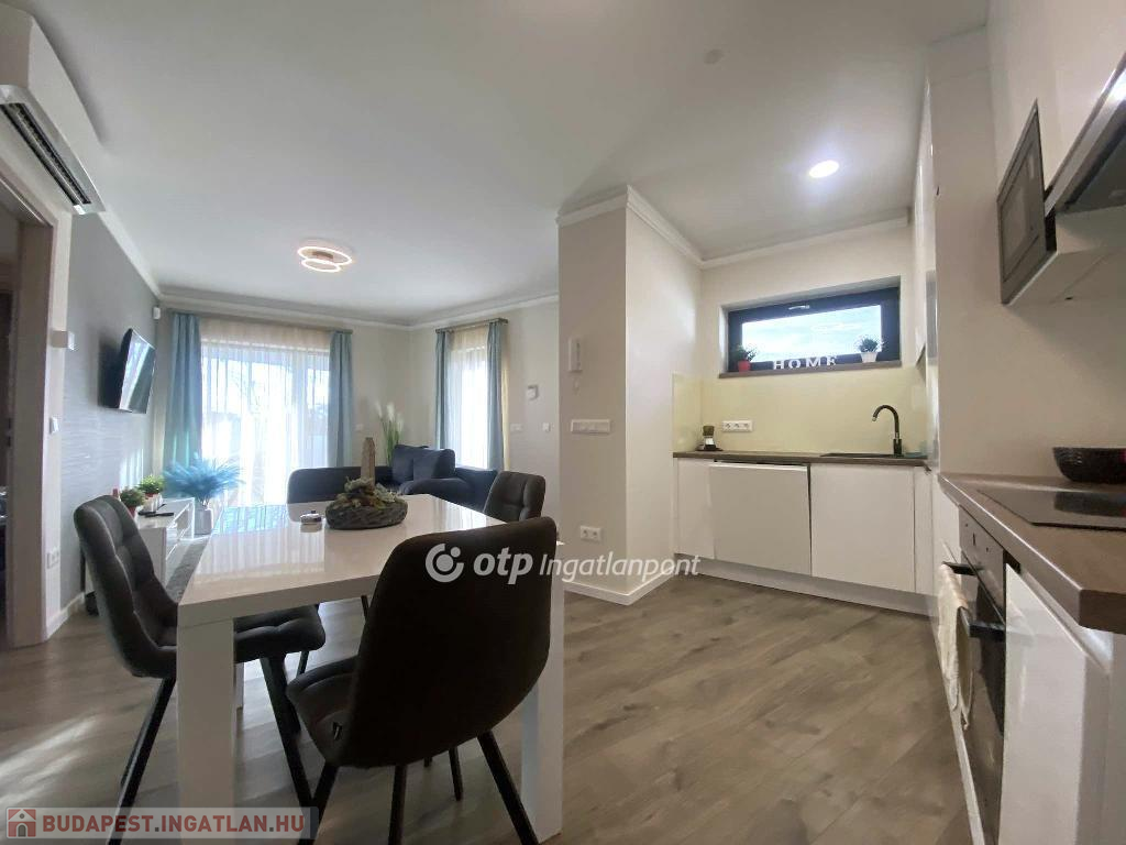 Siófok-Ezüstparton eladó egy 45 m2-es, 1 hálószobás okosotthon pár lépésre a Balaton-parttól! A 2022-es építésű társasház 3. emeletén található délkeleti fekvésű, hatalmas terasszal rendelkező lakás minden kényelmi funkcióval ellátott. A lakás hűtése, fűtése, árnyékolása, nyitása, zárása, riasztó rendszere távvezérlésű. Fűtését fancoil berendezések, a hidegburkolatú helyiségekben padlófűtés adja. A társasház kertjében feszített víztükrű felnőtt-, és gyerekmedencék szolgálják a lakók kényelmét. A ház kertje egy teleknyi távolságra van a Balatontól, a hátsó kapun kilépve 10 lépéssel elérjük a strand bejáratot. A központ szintén kényelmes gyalogtávolságra van az ingatlantól, 1 km-en belül minden szolgáltatás elérhető így nem csak nyaralónak ideális, hanem állandó lakhatásra is. A lakás teljes berendezéssel együtt kerül értékesítésre. Minden ingóság teljesen új, soha nem volt még lakva az ingatlan. Parkolás utcán, közterületen megoldható. Rugalmasan megtekinthető előzetes időpont egyeztetést követően! Részletekért kérem hívjon!