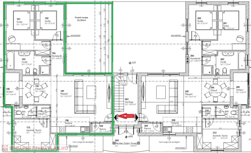 A 6 lakásos társasház rendezett, közös használatú udvarán található medence, és napozó terasz. A lakásokhoz 2 saját autóbeálló tartozik, melyek megvásárlása kötelező, ára 2x4.000.000,- Ft.