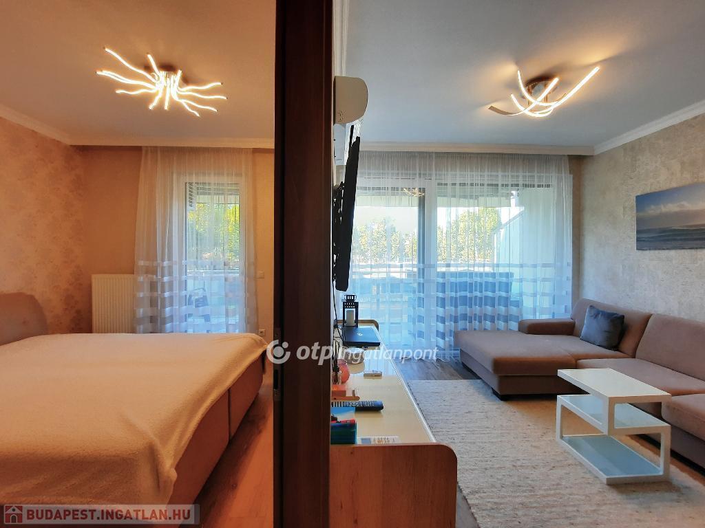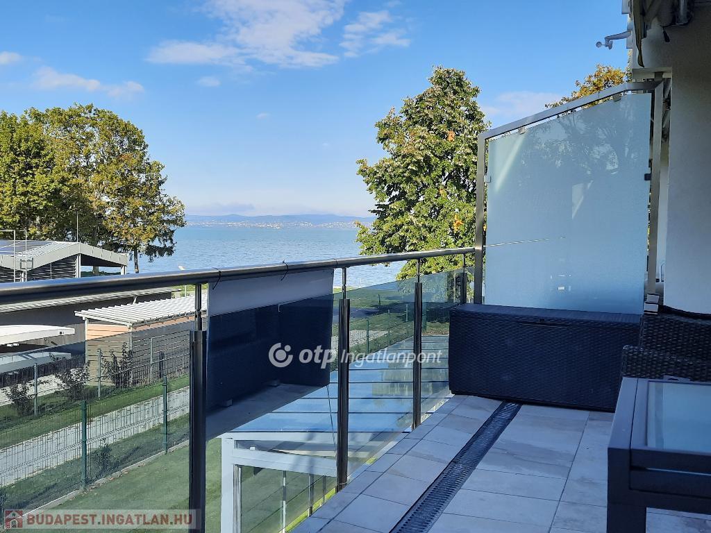 Balaton déli part Siófok 66 m2 lakás eladó. A balatoni panorámás ingatlan az Ezüstparton, vízparti társasüdülő 1. emeletén helyezkedik el, nyugati tájolással. A magas minőségű belsőépítészeti megoldásokkal, teljesen felszerelt és gépesített konyhabútorral, minden bútorral, berendezéssel együtt kerül értékesítésre, melyet a vételár tartalmaz. A bekerített területen belül a lakáshoz tartozik egy felszíni parkolóhely, ennek árát nem tartalmazza a hirdetési ár. Az első emeleten a lakáshoz vásárolható egy 2,7 m2-es tároló. Az emeleti lakás megközelítése lifttel biztosított. A lakótérhez és a nyugati oldali hálóhoz kapcsolódó 12 m2-es erkélyről csodálatos panoráma látható. A társasüdülő környezete parkosított, az építészeti megoldások igényes kivitelűek. A társasüdülő saját kijárattal rendelkezik a szabad strandra. A fűtés és meleg víz ellátás kondenzációs kombi gázkazánról megoldott, a lakótér klimatizált. A homlokzati nyílászárók korszerű szerkezetek, elektromos redőnyökkel kiépítve. Bővebb információért keressen telefonon!