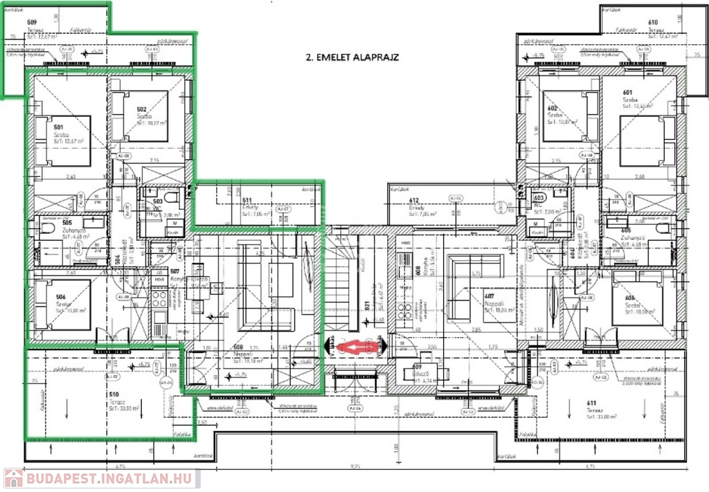 Az ingatlan magas színvonalú kivitelezéssel került újjáépítésre, a mai kor energetikai igényei alapján. A 2 szintes társas ház téglából épült, homlokzati szigeteléssel rendelkezik. A fűtés termosztáttal vezérelt elektromos padlófűtés, hűtő-fűtő klíma. Műszaki paraméterei: szigetelt lemeztető, műanyag nyílászárók, fa beltéri ajtók, minőségi meleg és hidegburkolatok. A lakásban lévő berendezés a vételár részét képezi.