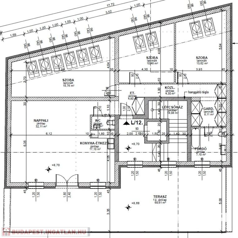 12. lakás III. emelet 115.19 m2 nettó lakótér + 69.61 m2 terasz - 180.000.000 Ft